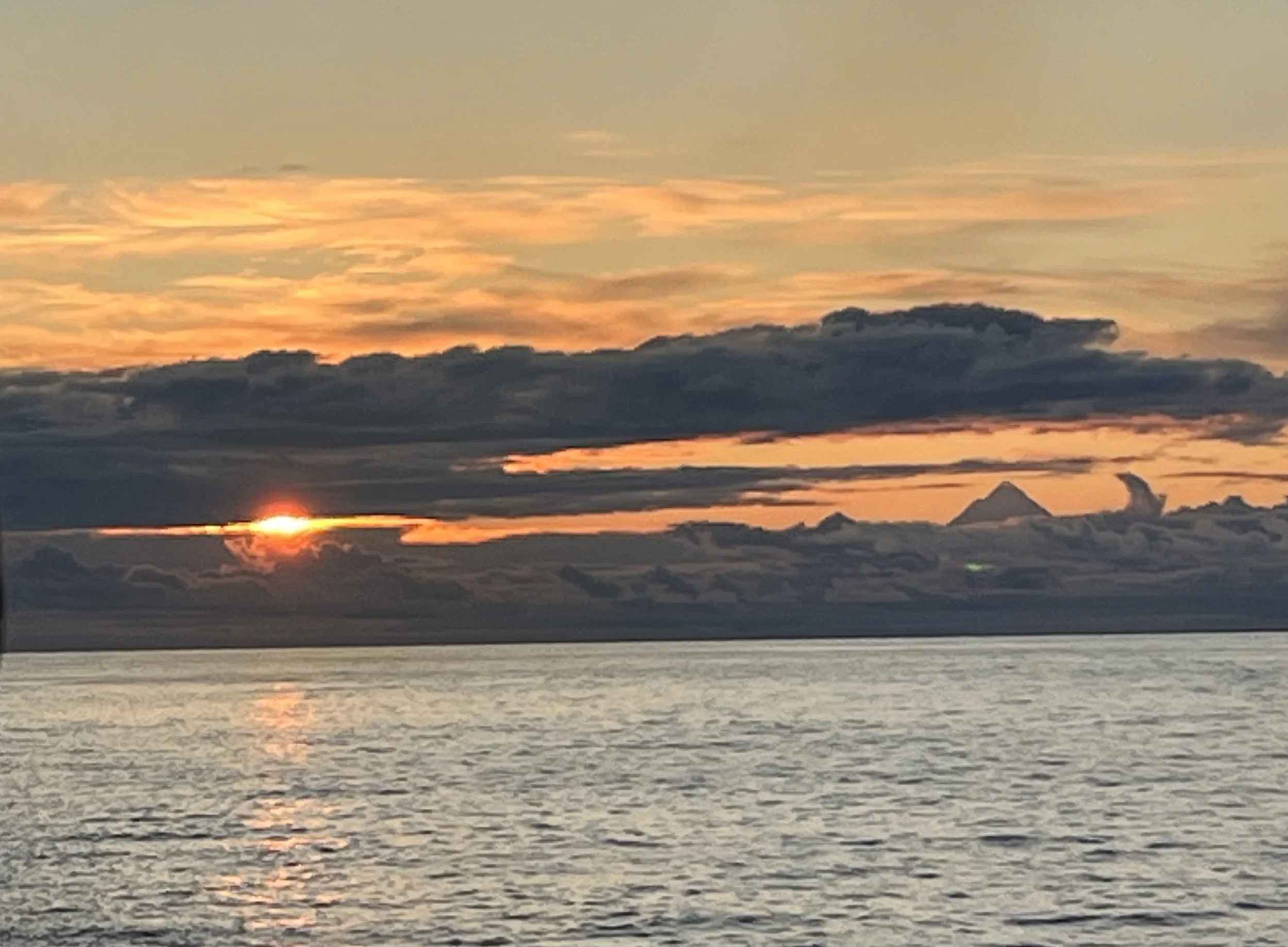 After breakfast, we started the morning with a water taxi ride to the Grace Ridge Trailhead. Along the way we saw two puffins in the distance. We also went by Gull Island that was of course full of gulls and murres . Two bald eagles stood watch. When one of the eagles started to fly, all the other birds went into defensive motion. The Merrs skimmed just along the water and the gulls flew high. It was quite a spectacle. We were dropped off at Sadie Cove Landing. When we hiked, the weather was rain off and on all day. Under the thicker tree canopy we stayed relatively dry, but in other places the trail was wet and slick. Just after I took off my raincoat, I fell sliding “up” an incline on the trail. I was covered in mud. With zero traction for me to move myself up, Drew, our guide, pulled me up with my pole. I then commented, “I wonder how I’ll manage that going downhill on the way back.” We hiked through the forest and then above the tree line. I wasn’t sure I would’ve finished hiking the whole 4.5 miles with a 3200 elevation gain and then back down in the 8 hours allocated. So when Alan and I reached 2400 feet of elevation gain and about 4 miles of hiking completed, we opted to stop there and start to head down on our own as the other hikers went for the top ridge line. We felt plenty safe on our own to start back down because Alan had a GPS emergency beacon should we run into trouble until the other hikers caught back up to us. Alan also had his trusty bear bell, his bear horn, and two tour supplied cans of bear spray. We went slowly down, so the group did catch up to us. However, not before I reached that downhill muddy spot. It didn’t go well. I was halfway through that section and I slipped again, but this time I went backwards with my foot caught underneath me in the wrong direction, injuring my ankle. We had cell signal on the mountain, so Alan texted our guide. Because they had already closed the gap so much, they were with us in just a few minutes. Our guide, did an outstanding job wrapping my ankle and stabilizing my foot so I could walk out of the woods. What took everyone else about an hour to finish the hike took me about 3 hours and twenty minutes. Without Alan’s help and encouragement, I don’t think I could have made it. There were areas that were so steep, I literally had to sit and inch my way down. During the hike down the rest of the mountain, Alan and Drew kept encouraging me to stop and rest and eat. I couldn’t; I was afraid that if I stopped, I wouldn’t be able to start again. To get some calories into me Alan and Drew picked salmon berries that they found along the trail. Due to my extended time to get down the mountain, we missed the scheduled water taxi back to our cabins, but Drew arranged for the cabin owners to pick us up. Unbeknownst to Alan and I, Drew had packed two cans of our beers in his pack so we could celebrate the longest hike of our trip. Those celebratory beers had a whole new meaning!! It was a long day; I iced my foot and took a few Tylenol with plans to go to a clinic the next day.