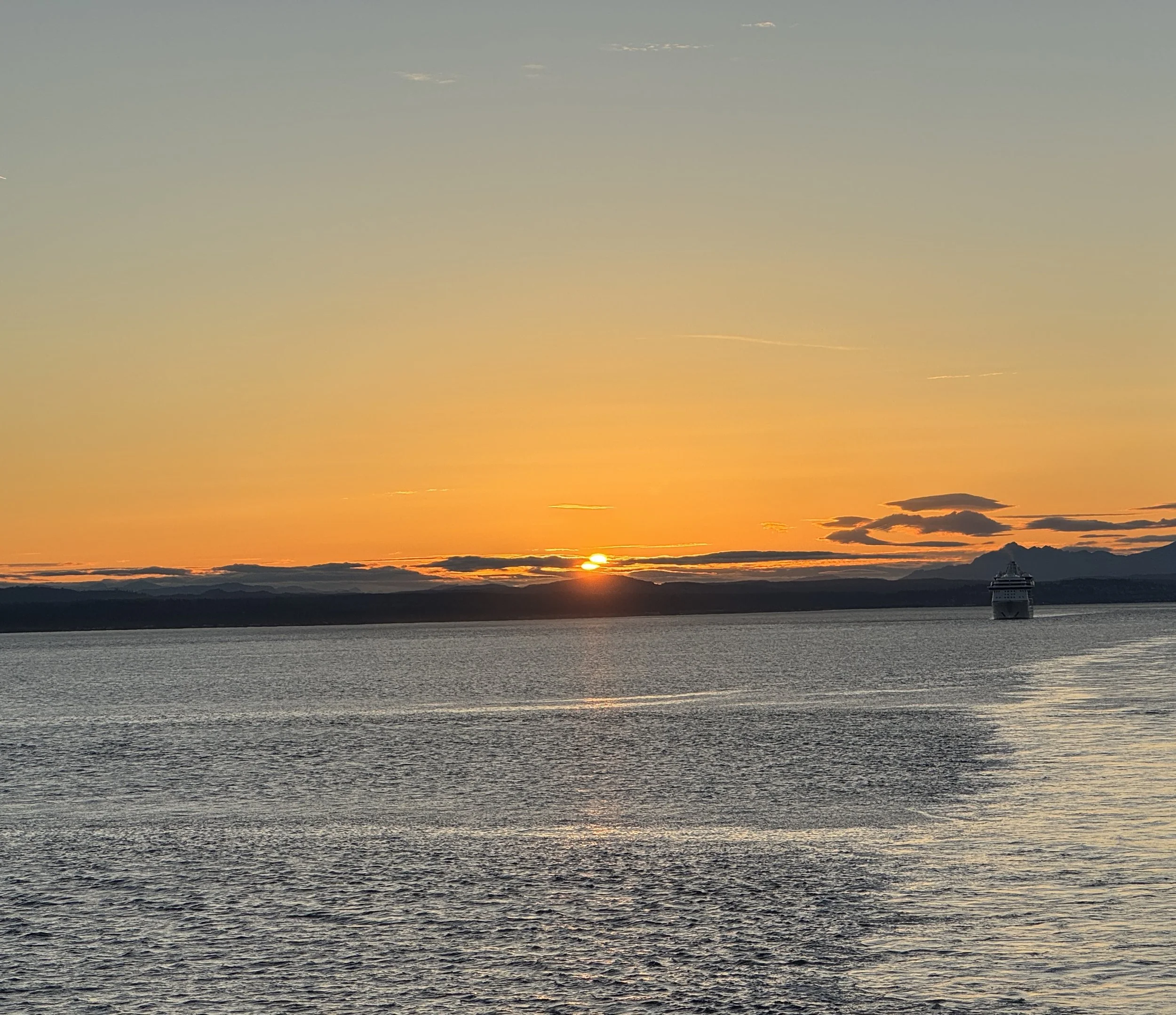 The last day of the cruise was sailing through the Inside Passage along the coast of British Columbia. What was extra special was that the sun was shining!! After six days of overcast skies, the sun was such a bonus!