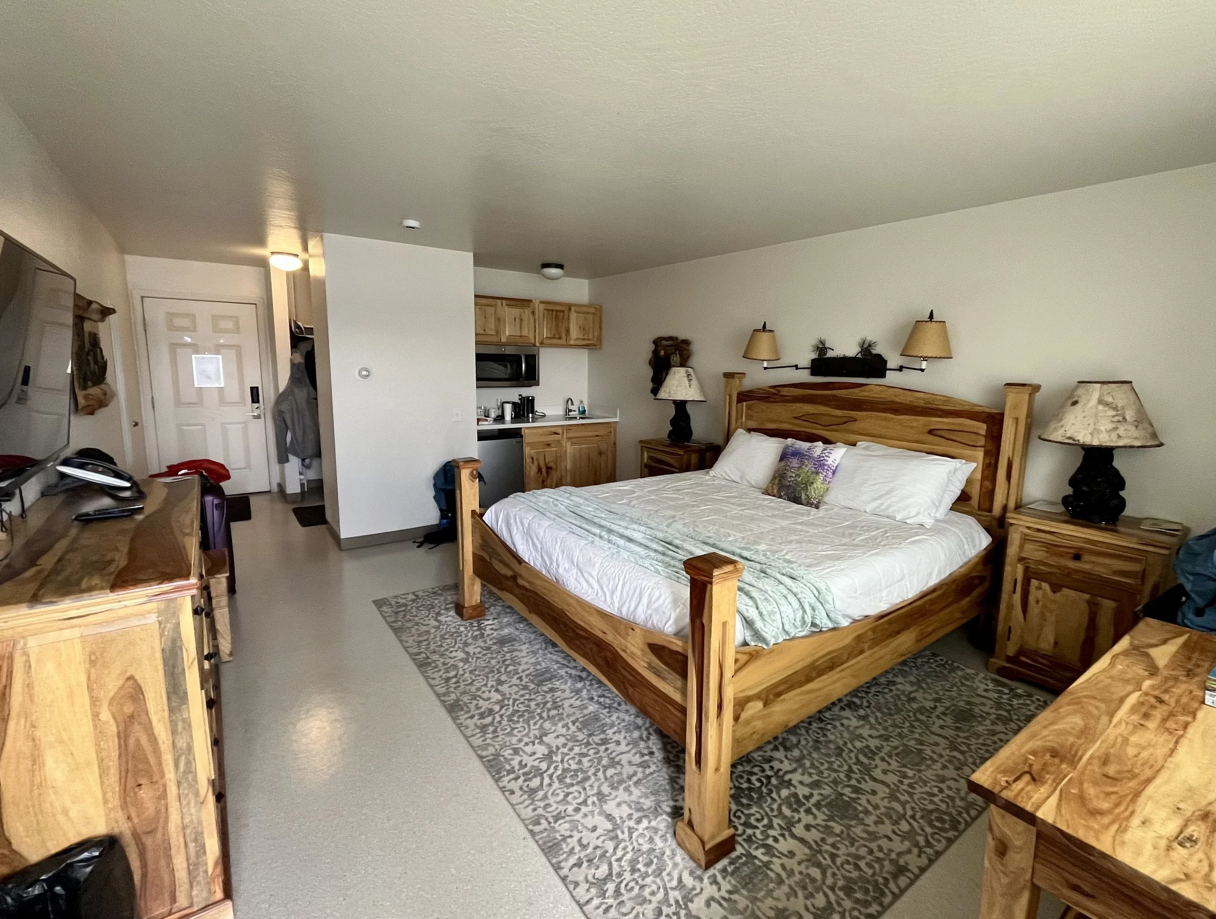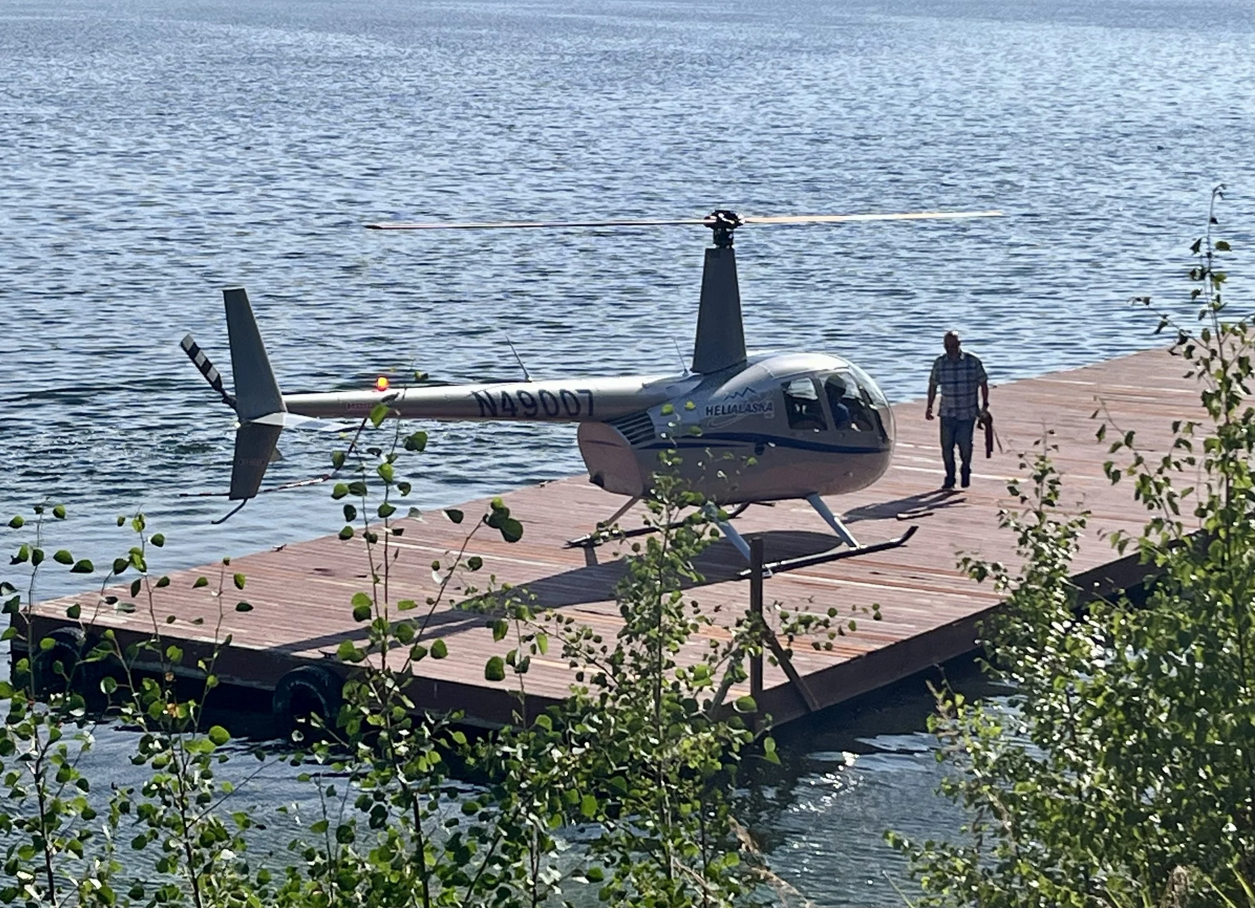 A helicopter landed on this small dock that was just outside the back door of our motel room.