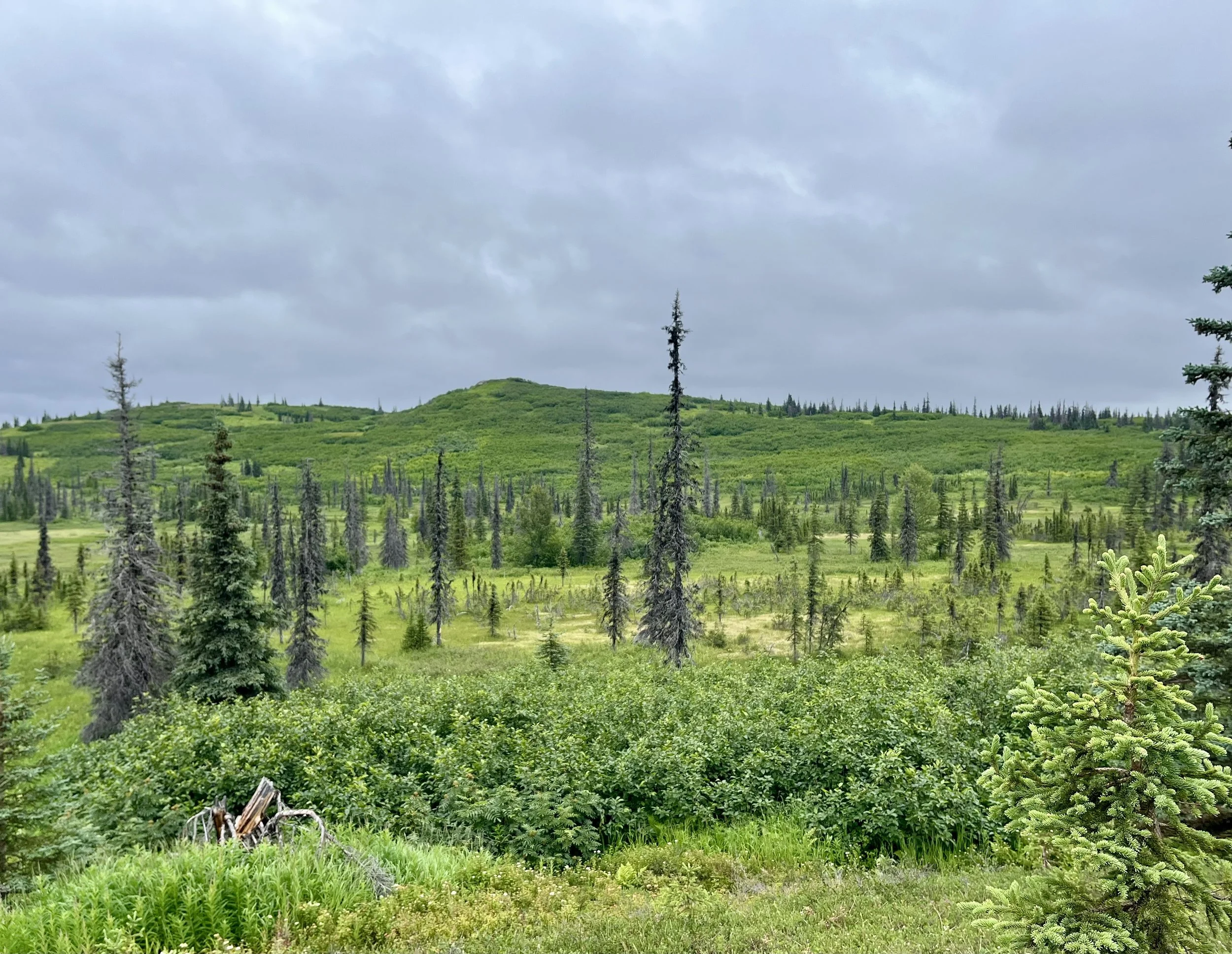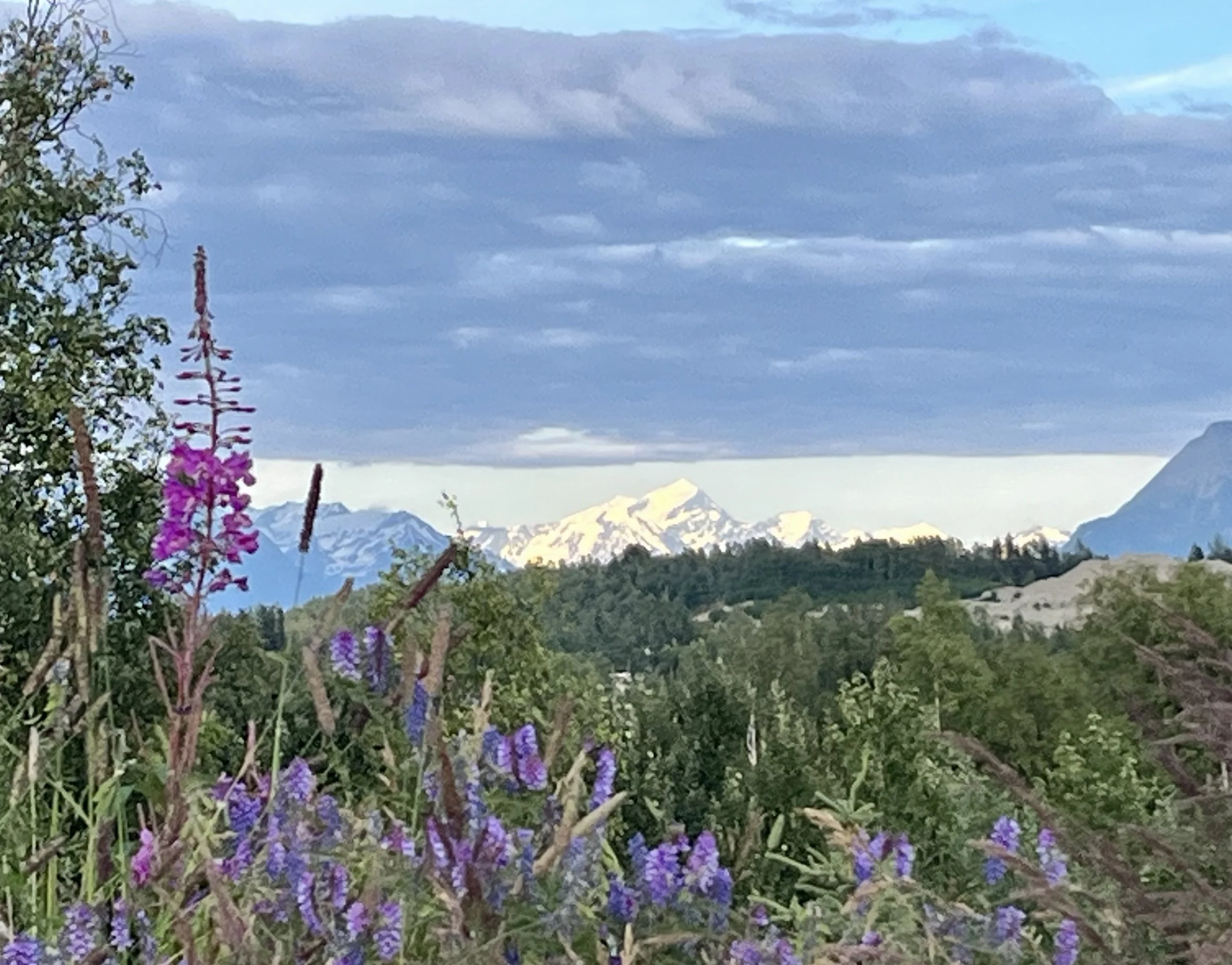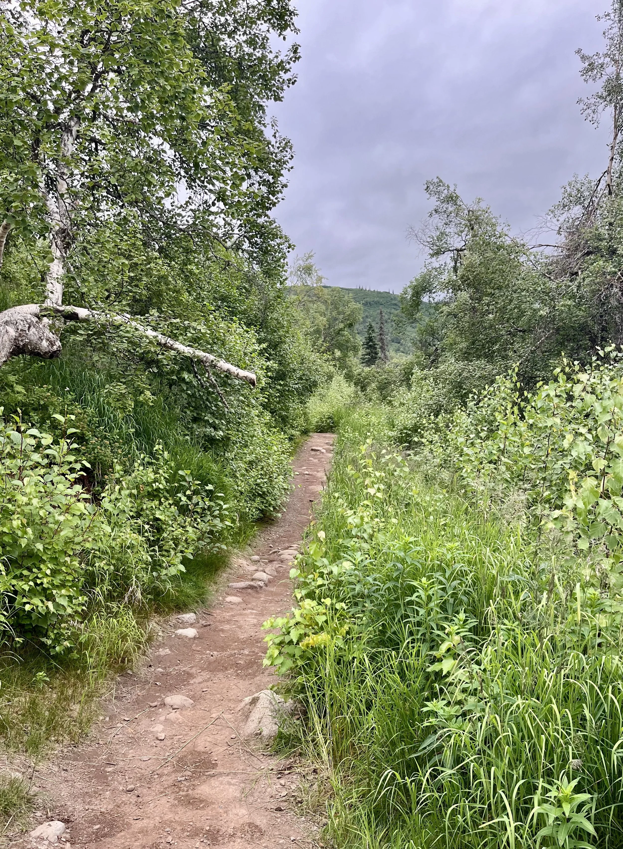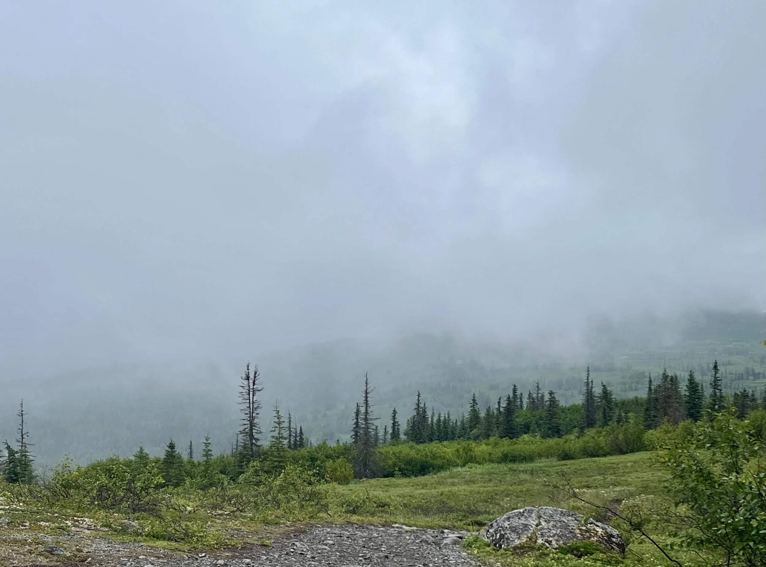 We started the day around 7am, with a delicious breakfast at the McKinley Creekside Cafe. We then loaded up into the van for about a 1.5 hour drive to Denali State Park near Talkeetna. We hiked the Curry Ridge Trail for just over seven miles. At the mid point of the hike we stopped for lunch. Our guide, Drew, worked his trail magic mimicking a Vietnamese style sandwich (or salad). Unfortunately, just as he started meal prep, it started raining. Everyone in the group donned their rain gear and made quick work of their food. After the hike we stopped for ice cream at the Kahiltna Birchworks. The store there sells unique birch syrup food products, including ice cream. Our overnight accommodations were in Wasilla at the Mat-Su Resort and dinner was at the Grape Tap Restaurant. The appetizers and main course was scrumptious; the desserts were out of this world. Several of us shared a deconstructed cheesecake and mudslide cake that tasted like a candy bar! The day started with temperatures in the mid-40’s and reached highs in the mid 60’s. Sunset was at 11:19pm.