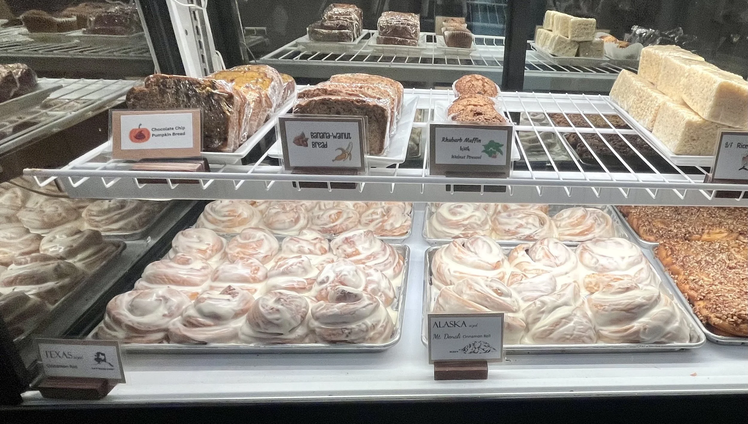 The restaurant that we went to for breakfast also had pastries. I had to snap a picture of the Texas cinnamon rolls (left) and the Alaskan options on the right.