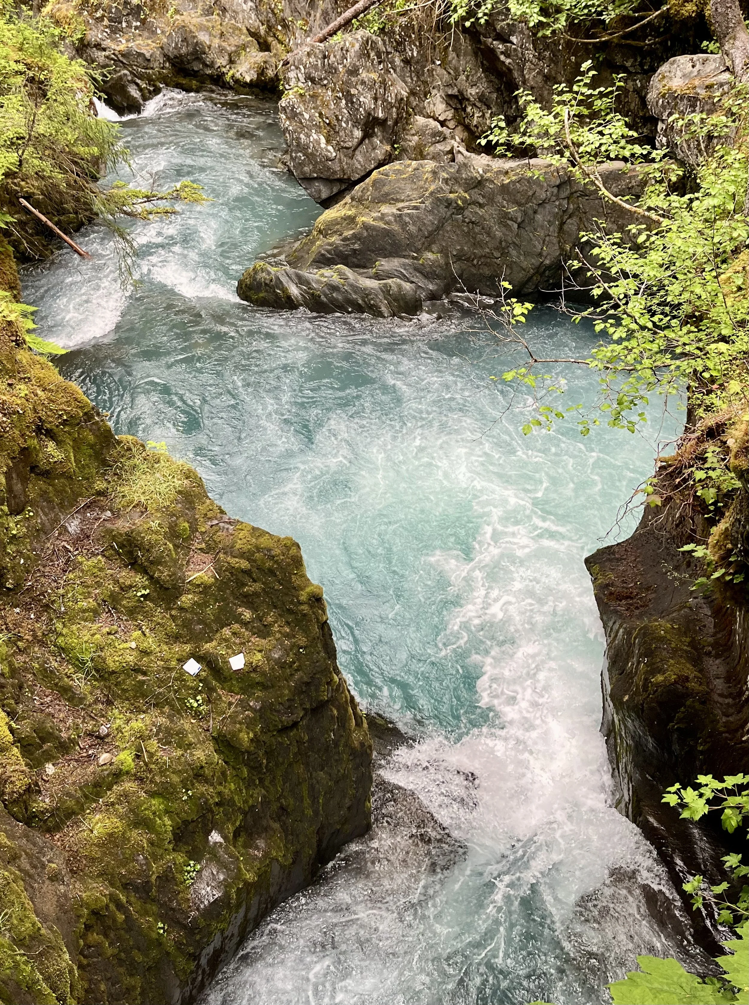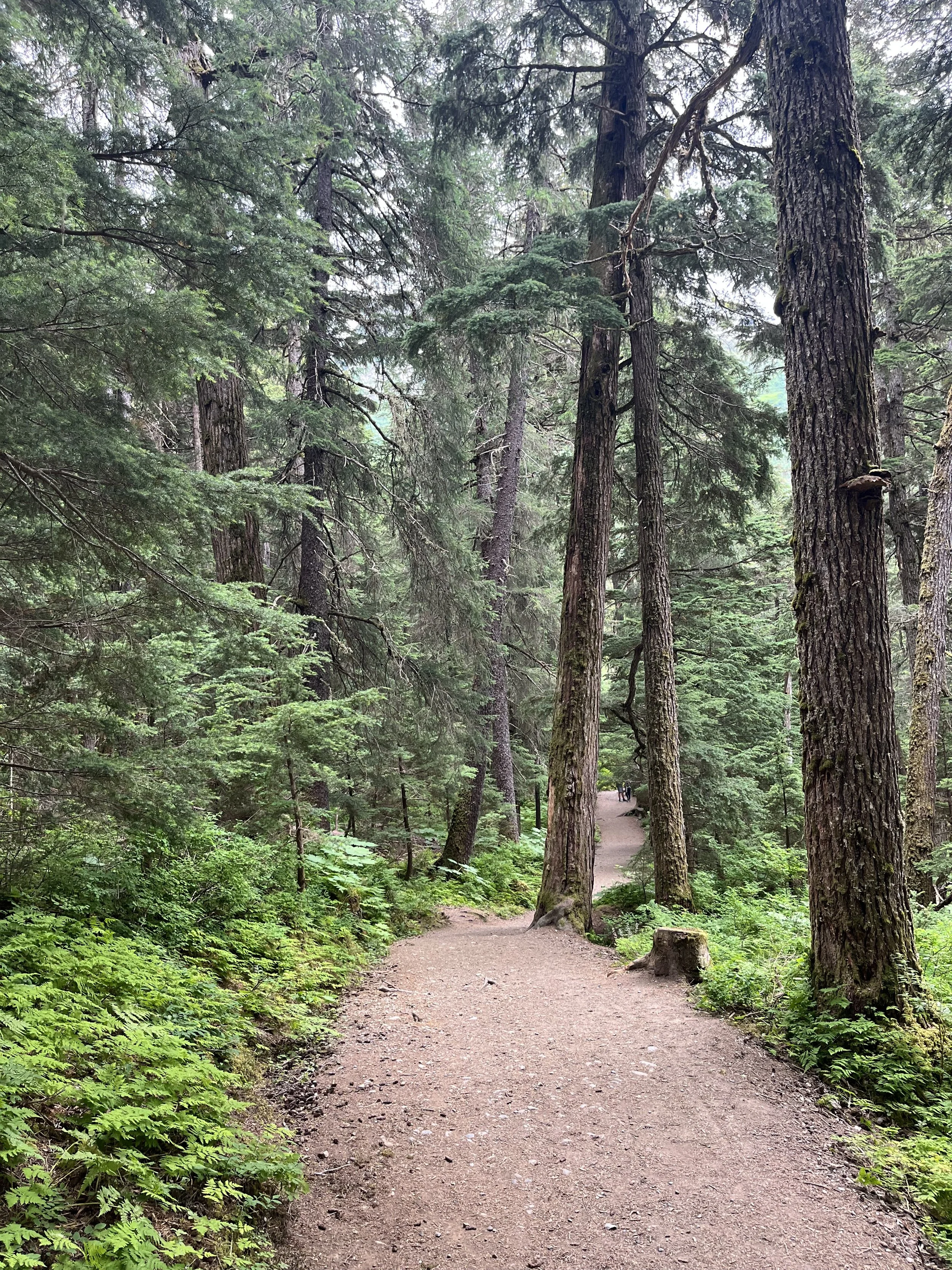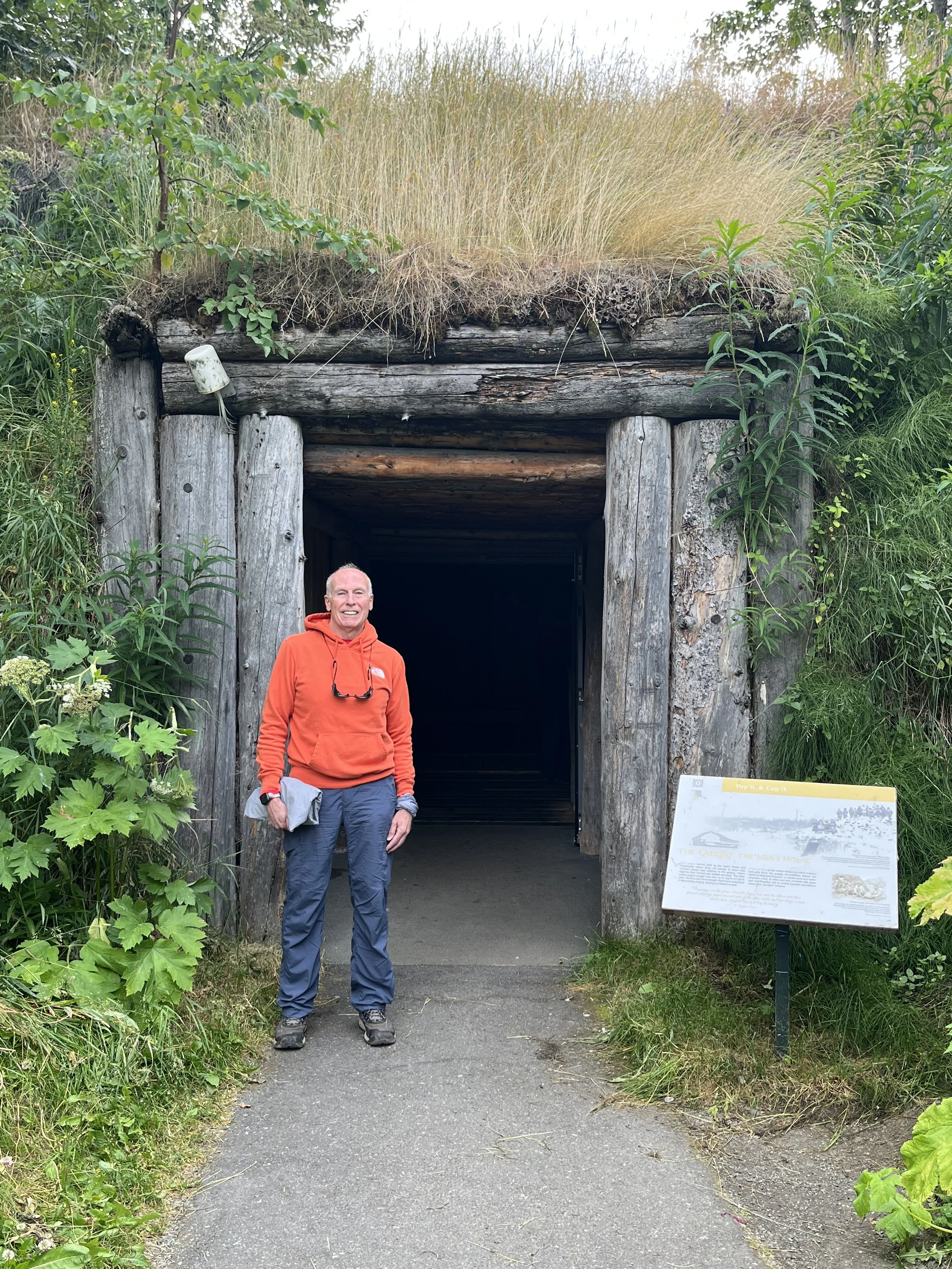 Sunrise was at 4:51 am in Wasilla. We started our van shuttle about 8:00am. On the way to today’s hike we made a stop at the Alaska Native Heritage Center in Anchorage. There were examples of each native people’s homes and ways of life, including the Athabascan, Yup‘Ik and Cup’Ik people, Inupiaq and St Lawrence Island Yupik people, and the Unangax and Alutiiq people. Their homes were built two to five feet below ground with earthen roofs of sod, moss and birch bark. The doorways were “l” or “j” shaped to keep the cold drafts and polar bears out. In some of the villages there were also larger community houses for work, planning, ceremonies and other activities. It was a very informative and enjoyable stop. Next we drove to Girdwood for a hike on the Winner Creek Trail. The trailhead was located behind the Altadena Resort (a ski resort). The hike was about a total of five miles (out and back). Just as we were to begin hiking, a tsunami warning was issued due to a 7.3 earthquake in the Gulf of Alaska. Our guide made phone calls and determined we were safe, as were the night’s lodging cabins. As we arrived at the half way point, it started to rain, but luckily it was light and we were mostly protected by the dense canopy. After the hike we drove to Hope where we stayed at the Bear Creek Lodge. Our cabin had electricity, but no water. Sunset was 11:11pm and the daytime temperatures were in the 50’s to mid 60’s.