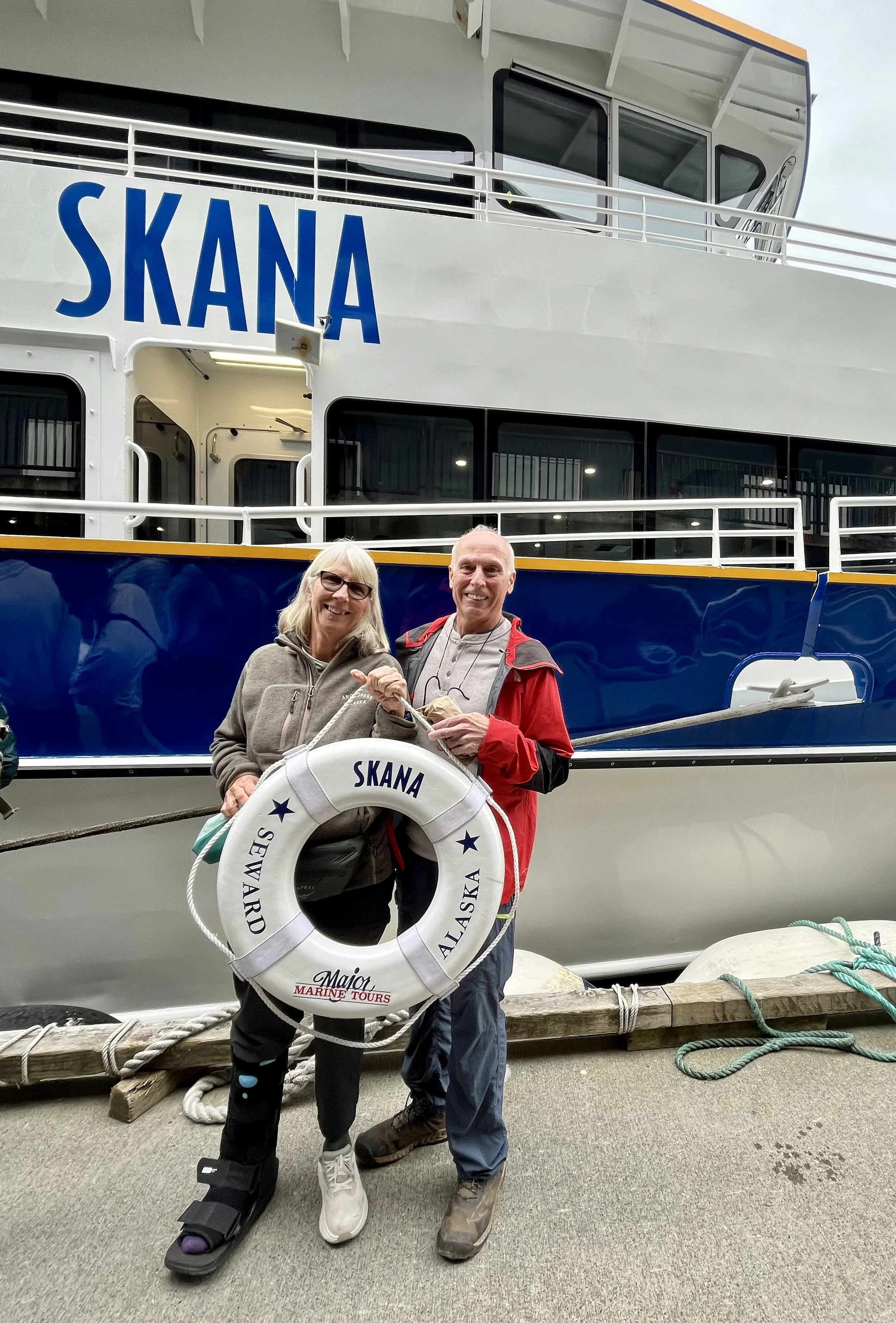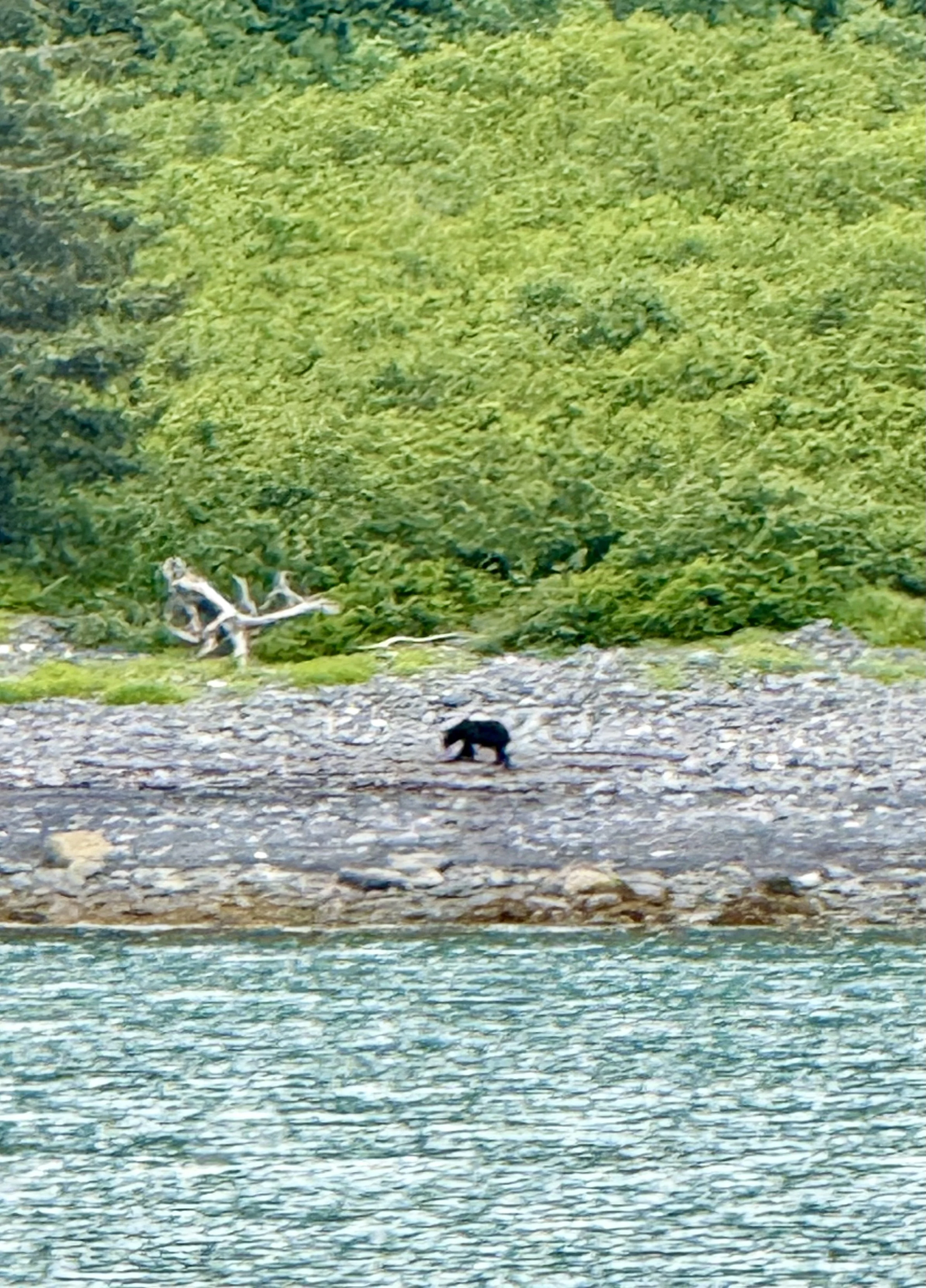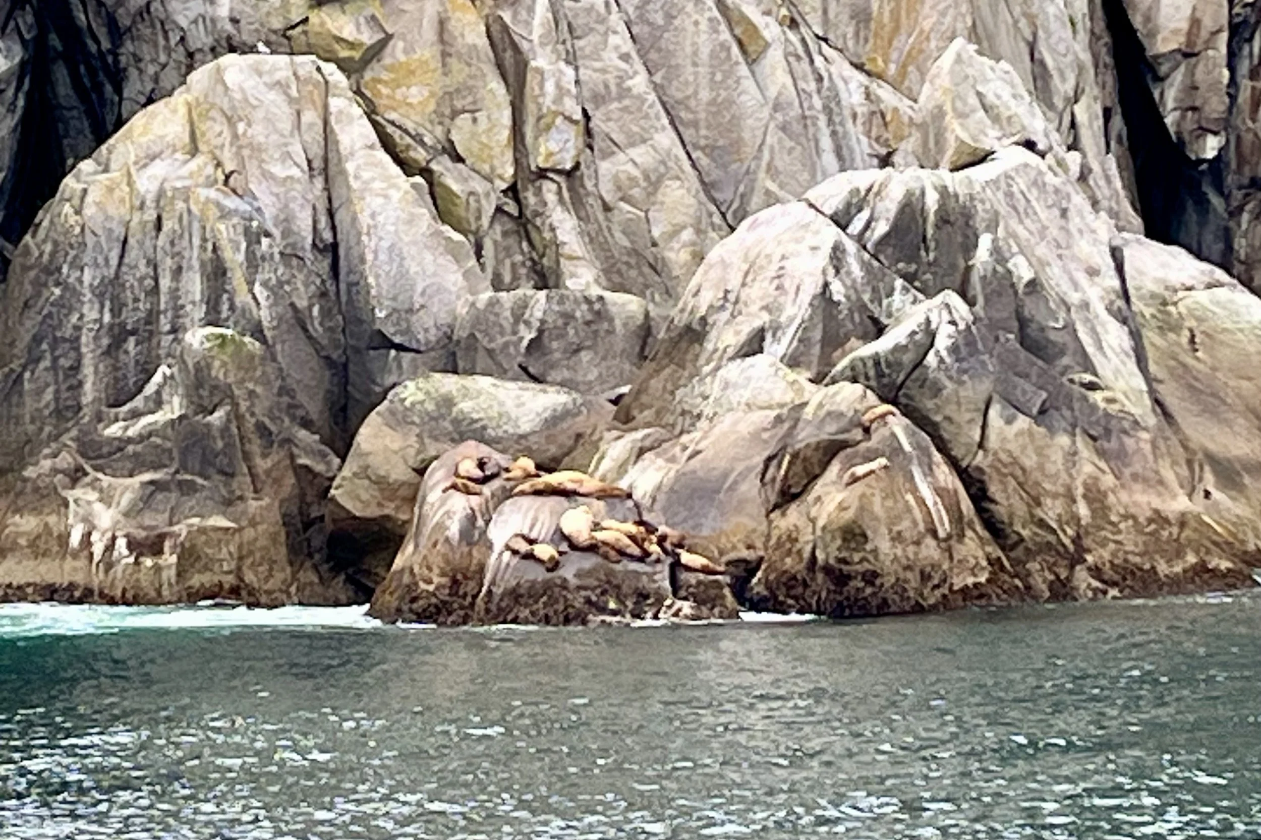 The morning was a slow start since I was unable to do the day’s hike. Alan and I booked a boat tour of the Kensington Fjords National Park that started at 11:30am and lasted six hours. The temperature was never more than 54 degrees and with the wind on the boat ride, it was down right cold! We were apprehensive because we had done a whale watching tour in Juneau and we didn’t get that close to the wildlife. Our worries quickly subsided as we witnessed Orcas surfacing within a better viewing distance than in Juneau. The views continued to be spectacular. We saw puffins, sea lions, harbor seals, humpback whales, dall porpoises, common murres, a black bear and the Holgate Glacier. The glacier was close enough to hear it cracking. Although we didn’t hike, it was a great day capped off with a fish and chips dinner at Miller’s Landing.