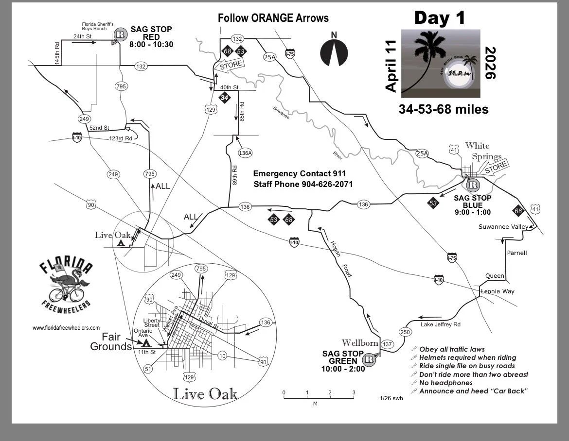 I’m summarizing a bit different for this ride because I did this ride a few years ago when there were two locations. This year with all rides being out and back from then same starting point, there tended to be repetition. In addition, after a long recovery from two surgeries in the same foot/ankle last fall, I did the minimal miles each day. As in the past, Sue Tantalo invited me and several of her riding friends to join the event. This year our group started with eleven riders, including: Sue, Fred, Linda, Ray, Glen, Keith, Mike (a friend of Keith), Barbara (a friend of Ray), Nancy (a friend of Linda), Alan and I. Ray and Barb always started riding early because of their slower speed. Keith and Mike rode together the first three days, and the rest of us started together, however, we didn’t always finish together.