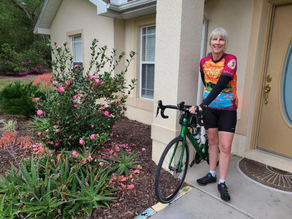 Knowing that we had a longer day today, we started early at 7am. Unfortunately, our rooms didn’t have coffee (clean, but seedy hotel) so we stopped about five miles down the road at a Dunkin Donuts. It wasn’t too far into the ride when Ray decided that all of the rest of us were going off course. We were not. Ray had the wrong route loaded. To be fair, it had been an option, although not the one we were using. Shortly after that, Sue got the only flat of the ride. Now we were two hours into our ride and had only traveled 11 miles. Hmmm. We were starting to take bets on how long it would take for the whole day. We stopped for lunch in Bushnell again. Then, we started our battle against the wind. It was from the WSW at 12 mph with gusts of 25mph. Those gusts could knock you over. We stopped several times along the road during the last 15 miles to rest because in addition to the wind, we had some hills to traverse as well. Several of the group suggested these 15 miles stretch would be good practice for the Northern Tier. We finally ended the ride at my house and celebrated with a toast of champaign, pizza and an early surprise birthday cake for Sue. Great ride, great friends!! Epilogue: I was just off ten minutes in when I guessed what time we would end today. I guessed 4pm. We ended at 4:10pm.