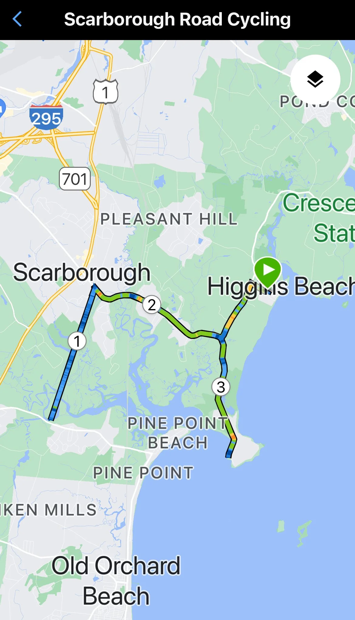 The next out and back was to Prouts Neck Cliff Walk near the waterfront. It is a 1.1 mile walk along the ocean. Unfortunately, when the ride leader arrived at the trailhead it was closed due to erosion/trail damage. So we headed back to the Inn to end our ride. The temperature had warmed up to 65 and the winds remained constant from the morning. We said our farewells to ride leaders Dave & Wayne and fellow riders: Regina, Phil, Mary Beth, Janet and Gary.